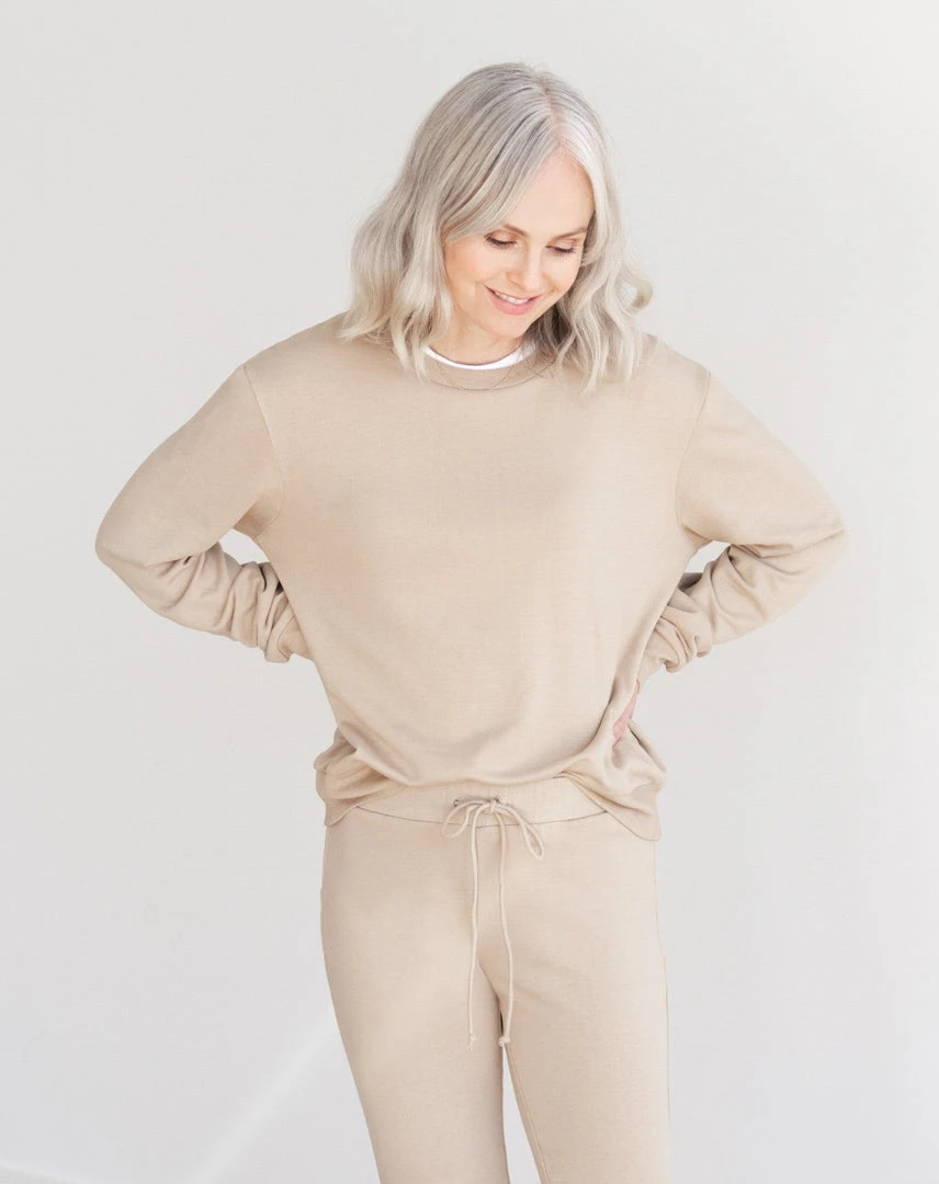Resilient, anti-microbial modal and sustainable cotton come together in this soft fabric, making the Live In Sweatshirt ideal for loungewear go-to. Complete the look with the Throw On Pant for lazy days at home or wear it with jeans for coffee and errands on the go.