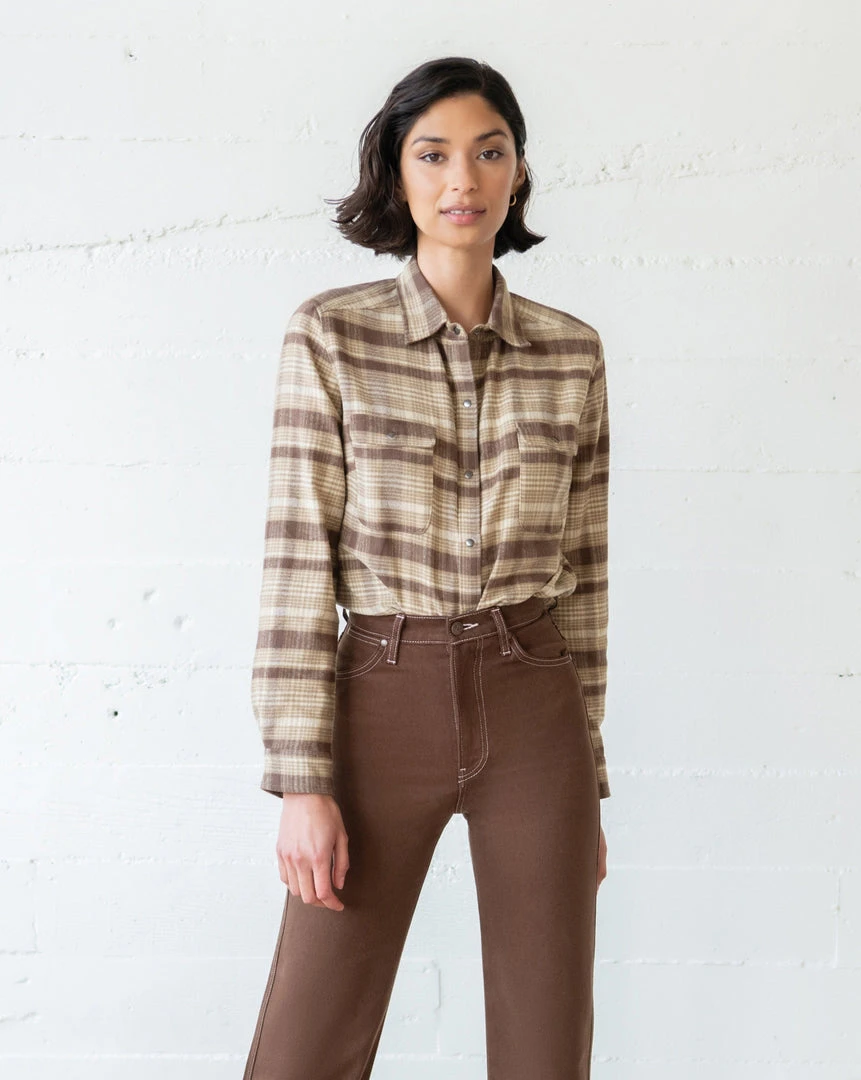 Wear it now, keep it forever. That’s the mentality behind this iconic Western-inspired button-down. Built for enduring comfort out of organic cotton, this flannel features double-breasted patch pockets, snap closures, and an earth-toned plaid print.