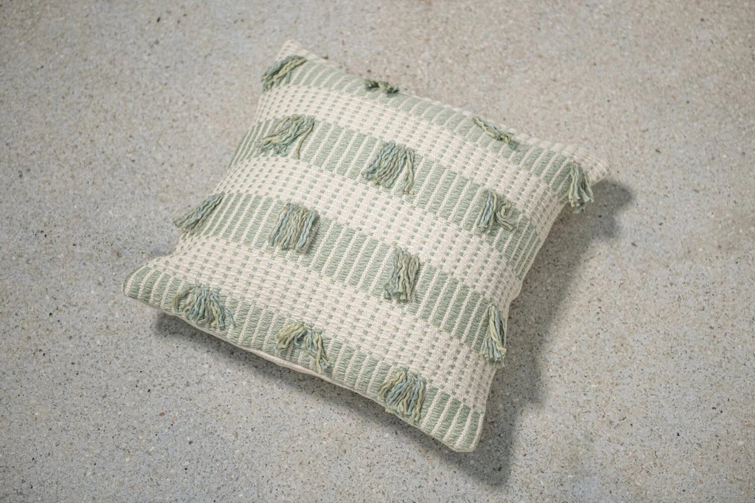 This textured pillow showcases soft pink or green color variations together with a classic weft faced weave. The organic cotton makes it an ultra soft statement piece that will brighten up any space.